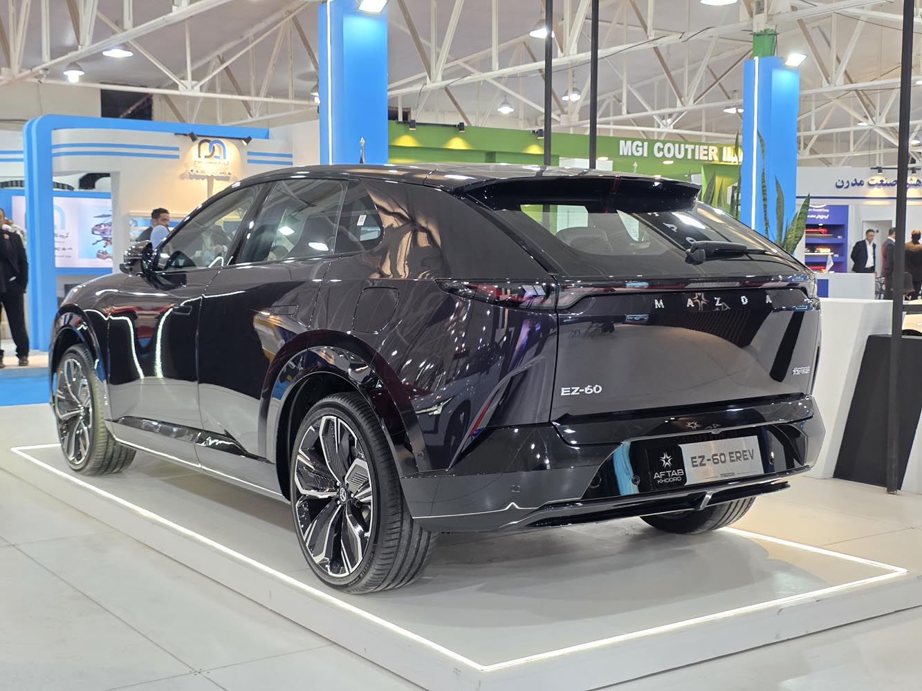 در کنار سدان EZ-6، آفتاب خودرو از برادر بلندقامت آن یعنی کراس‌اوور EZ-60 نیز رونمایی کرده است. این خودرو که تنها چند روز پیش از نمایشگاه ساری به‌صورت رسمی معرفی شد، اکنون اولین برخورد نزدیک خود را با مخاطبان تجربه می‌کند. بازار ایران به شدت تشنه کراس‌اوورهاست و EZ-60 دقیقاً برای پر کردن این خلاء در سبد محصولات مزدا طراحی شده است. طراحی این خودرو عضلانی‌تر از برادر سدان خود است و جلوپنجره بزرگ و بسته (که خاص خودروهای الکتریکی است) چهره‌ای مدرن به آن بخشیده است.