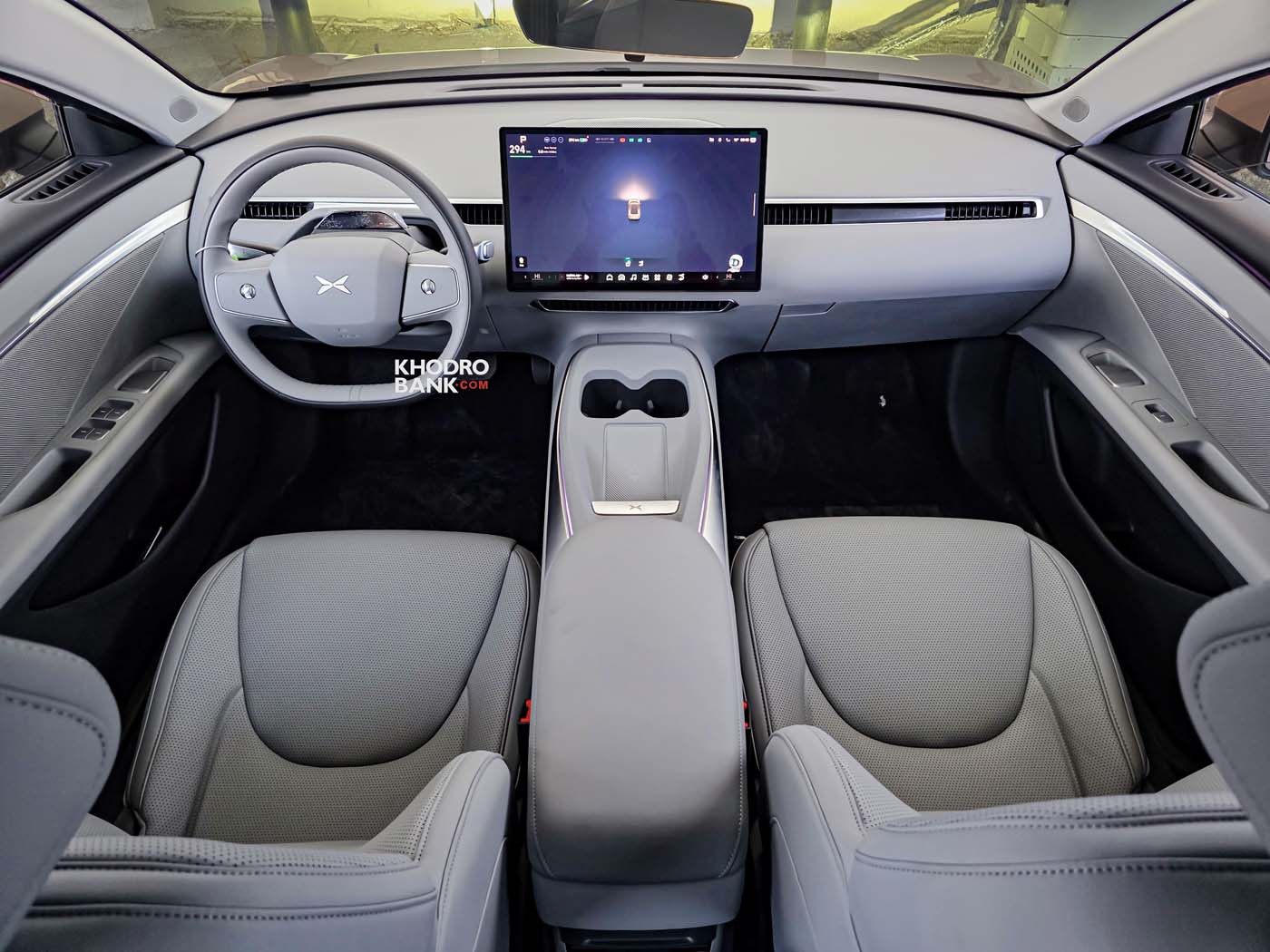 با ورود به کابین اکسپنگ مونا M03، بلافاصله متوجه شباهت فلسفه طراحی آن با تسلا مدل 3 خواهید شد. اکسپنگ عملاً تمامی دکمههای فیزیکی را حذف کرده و آنها را در یک نمایشگر مرکزی عظیم 15.6 اینچی جای داده است. این مانیتور قلب تپنده خودرو است و از تراشه قدرتمند Snapdragon 8155 کوالکام بهره میبرد که تضمینکننده عملکردی روان و بدون لگ در اجرای برنامهها و نقشههای سهبعدی است. متریال بهکار رفته در داشبورد و رودریها از نوع مرغوب و نرم بوده و حس یک خودروی مدرن و فراتر از اقتصادی را به سرنشین منتقل میکند. سقف پانورامای وسیع با لایه محافظ حرارتی، فضای کابین را بزرگتر و دلبازتر نشان میدهد.