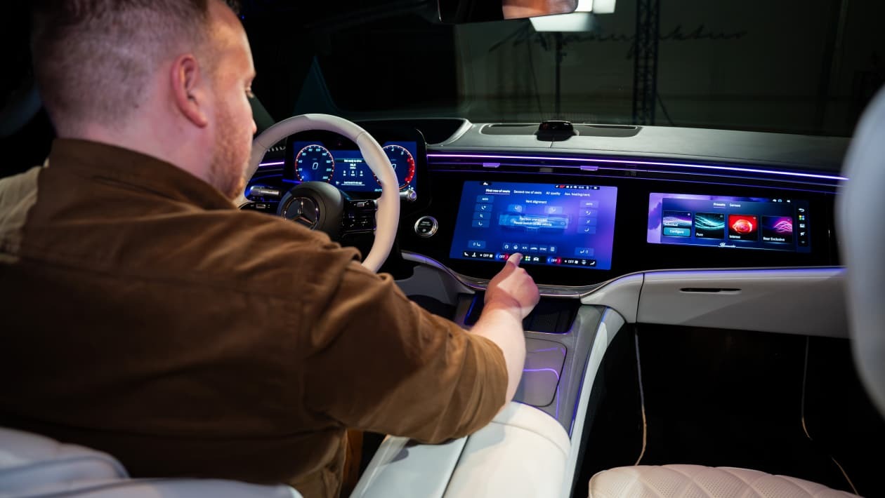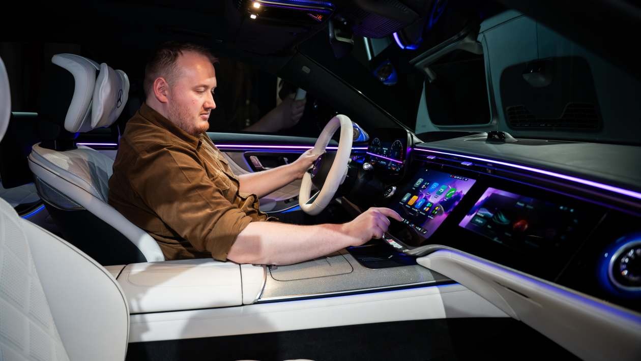 نکته مثبت و کاربردی در کابین جدید، بازگشت دکمههای فیزیکی به فرمان خودرو است. مرسدس با گوش دادن به بازخورد مشتریان، پنلهای لمسی خستهکننده قبلی را با سوئیچهای باکیفیت جایگزین کرده تا ارگونومی بهتری ایجاد شود. همچنین، برای اولین بار کمربندهای ایمنی گرمشونده با دمای 44 درجه سانتیگراد معرفی شدهاند که علاوه بر حس آرامش، سرنشینان را تشویق میکند کتهای ضخیم خود را در آورده تا کمربند بهترین عملکرد ایمنی را در زمان حادثه داشته باشد. نقطه ضعف احتمالی در این بخش، وابستگی بیش از حد به هوش مصنوعی (ترکیب ChatGPT و Gemini) است که ممکن است برای کاربرانی که به دنبال سادگی هستند، کمی گیجکننده باشد.