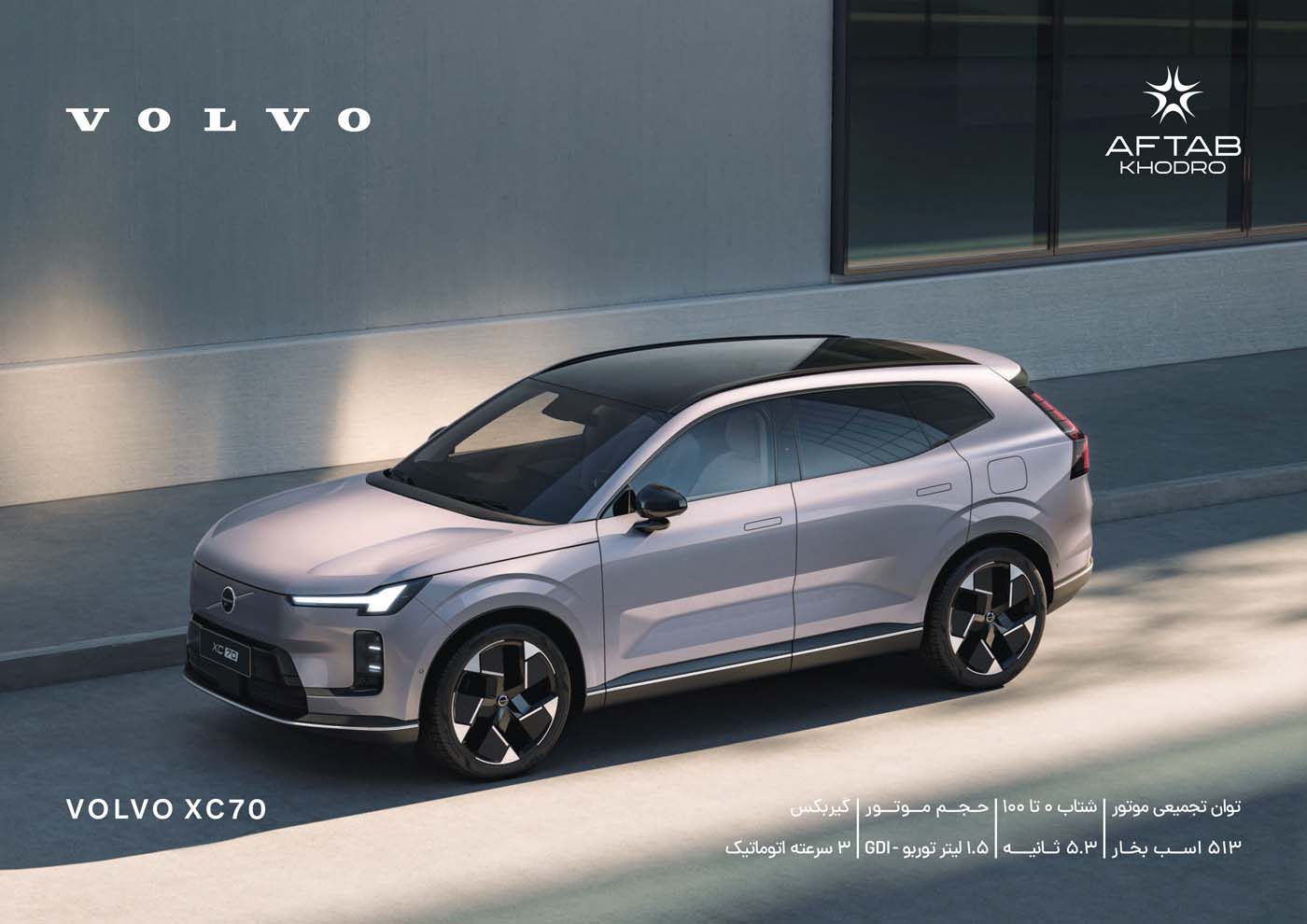 بر اساس جدیدترین کاتالوگ منتشر شده از سوی شرکت آفتاب خودرو، این شرکت قصد دارد محصولی جدید با نام تجاری ولوو XC70 را روانه بازار ایران کند. این خودرو که در رده محصولات شاسی‌بلند (SUV) قرار می‌گیرد، با پیشرانه پلاگین هیبرید و مجموعه‌ای کامل از امکانات رفاهی و ایمنی به دست مشتریان خواهد رسید. طبق اطلاعات مندرج در کاتالوگ رسمی، آفتاب خودرو به عنوان نماینده فروش و خدمات پس از فروش این محصول معرفی شده است. انتشار این اطلاعات نشان‌دهنده برنامه جدی این شرکت برای حضور در بخش خودروهای پاک و پرقدرت بازار است. در این گزارش به بررسی دقیق مشخصات فنی، ابعاد و لیست امکانات این خودرو بر اساس مستندات ارائه شده می‌پردازیم.