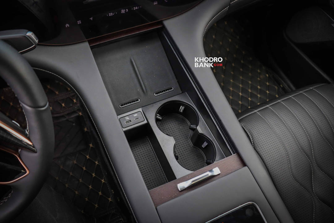 تریم داخلی کابین نیز از چرم بوده و ترکیبی از رنگ‌های قهوه‌ای تیره و مشکی دارد.