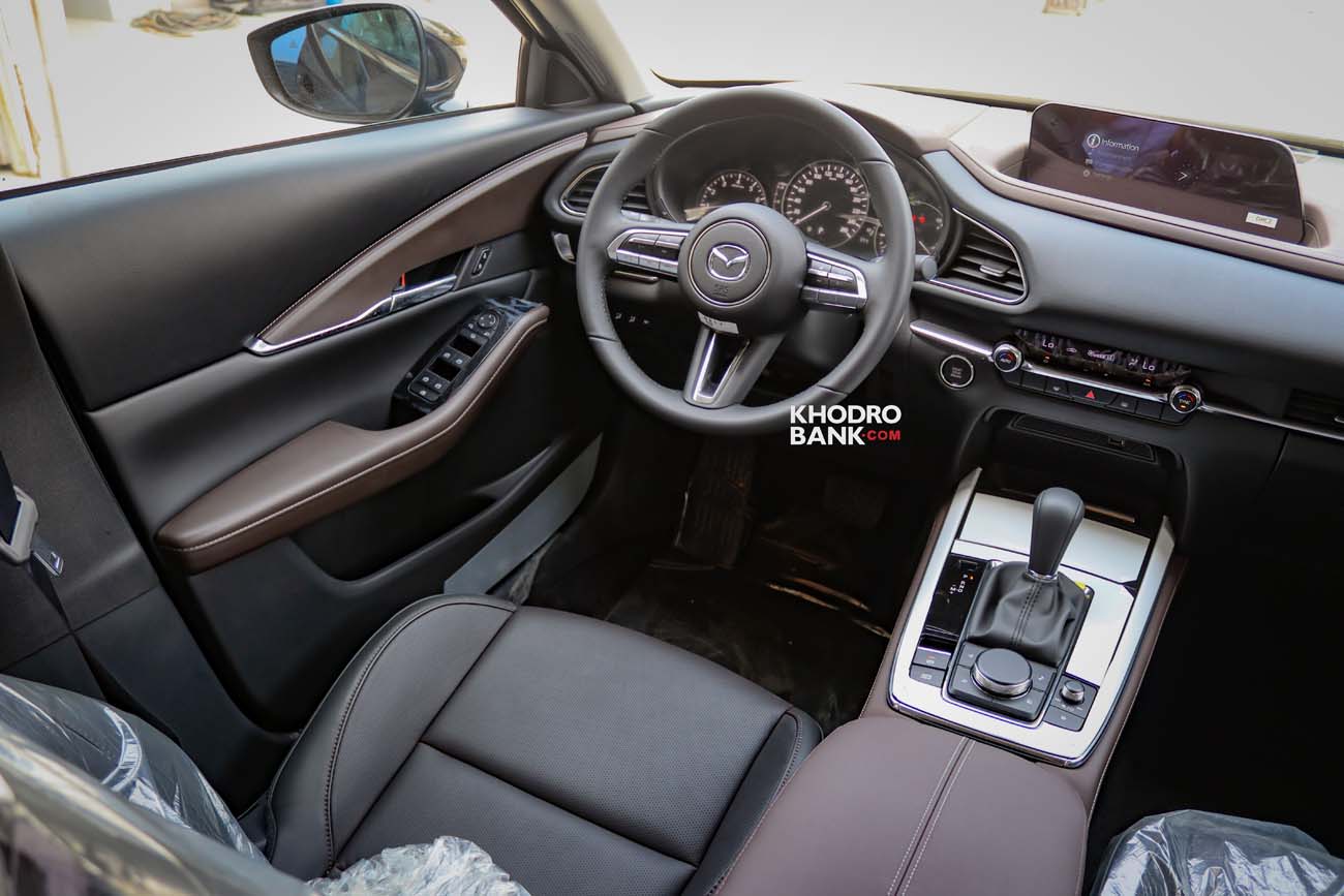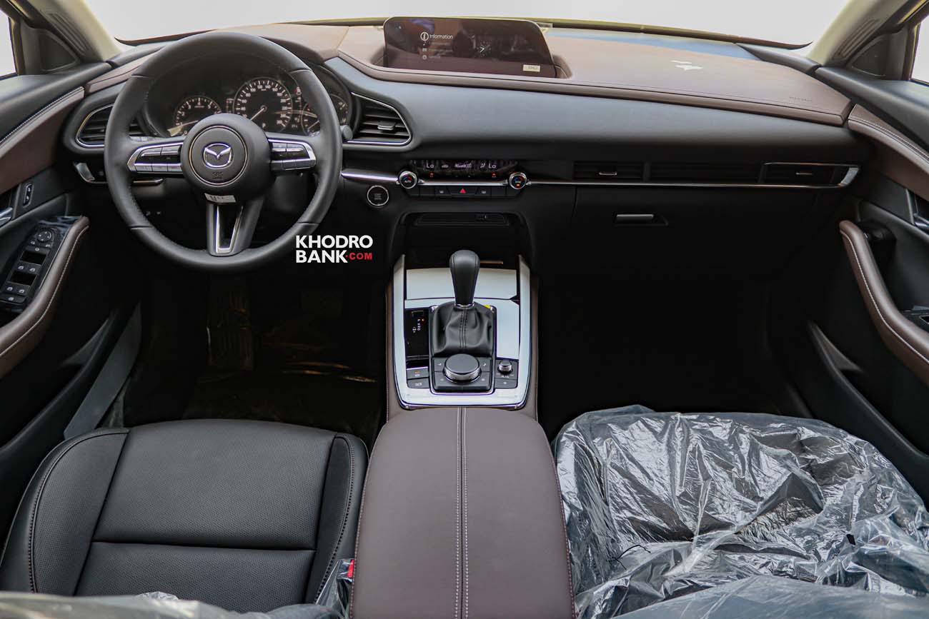 کابین داخلی مزدا CX-30 با طراحی شیک و استفاده از مواد با کیفیت مانند چرم و سطوح نرم، حس لوکس بودن را القا میکند. فضای پا در صندلیهای عقب مناسب است و برای افرادی با قد ۱.۷ متر، فضای سر کافی وجود دارد.
