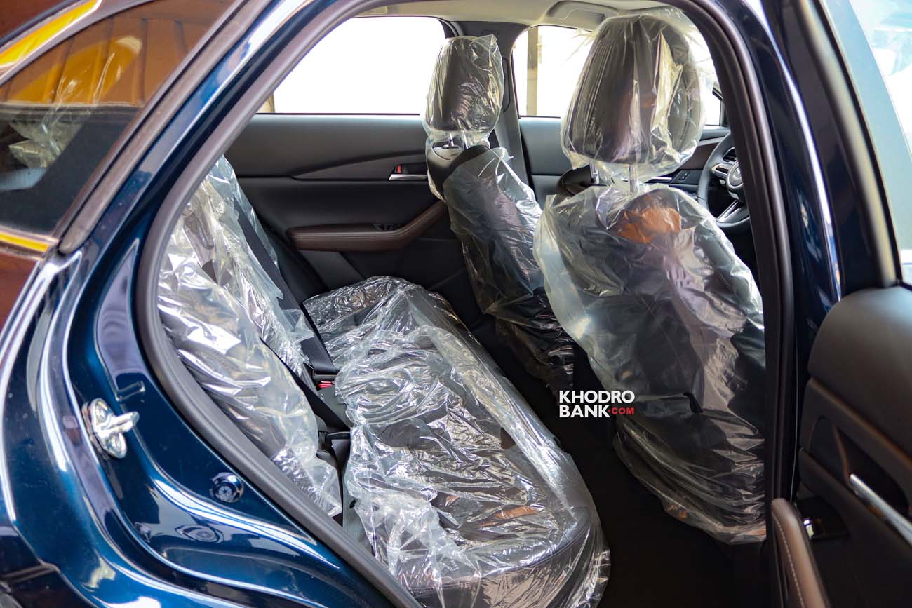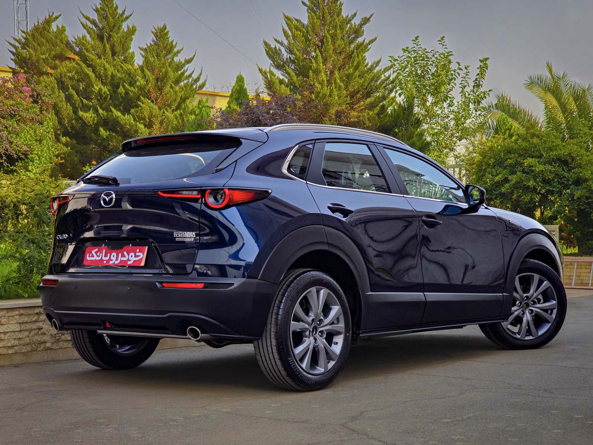 فضای عقب مزدا CX-30حجم فضای بار در عقب خودرو ۴۳۰ لیتر است و در کنار آن جا لیوانیها، محفظههای درب و یک جعبه عمیق بین صندلیهای جلو که به عنوان زیرآرنجی نیز عمل میکند، در اختیار سرنشینان قرار دارد. درب عقب برقی (به جز مدل پایه) و ترمز پارک الکترونیکی از دیگر امکانات قابل توجه این خودرو است. سیستم صوتی هشت بلندگویی صدایی شفاف و با کیفیت ارائه میدهد و دوربین دید ۳۶۰ درجه پارک کردن در فضاهای محدود را بسیار آسان میکند.