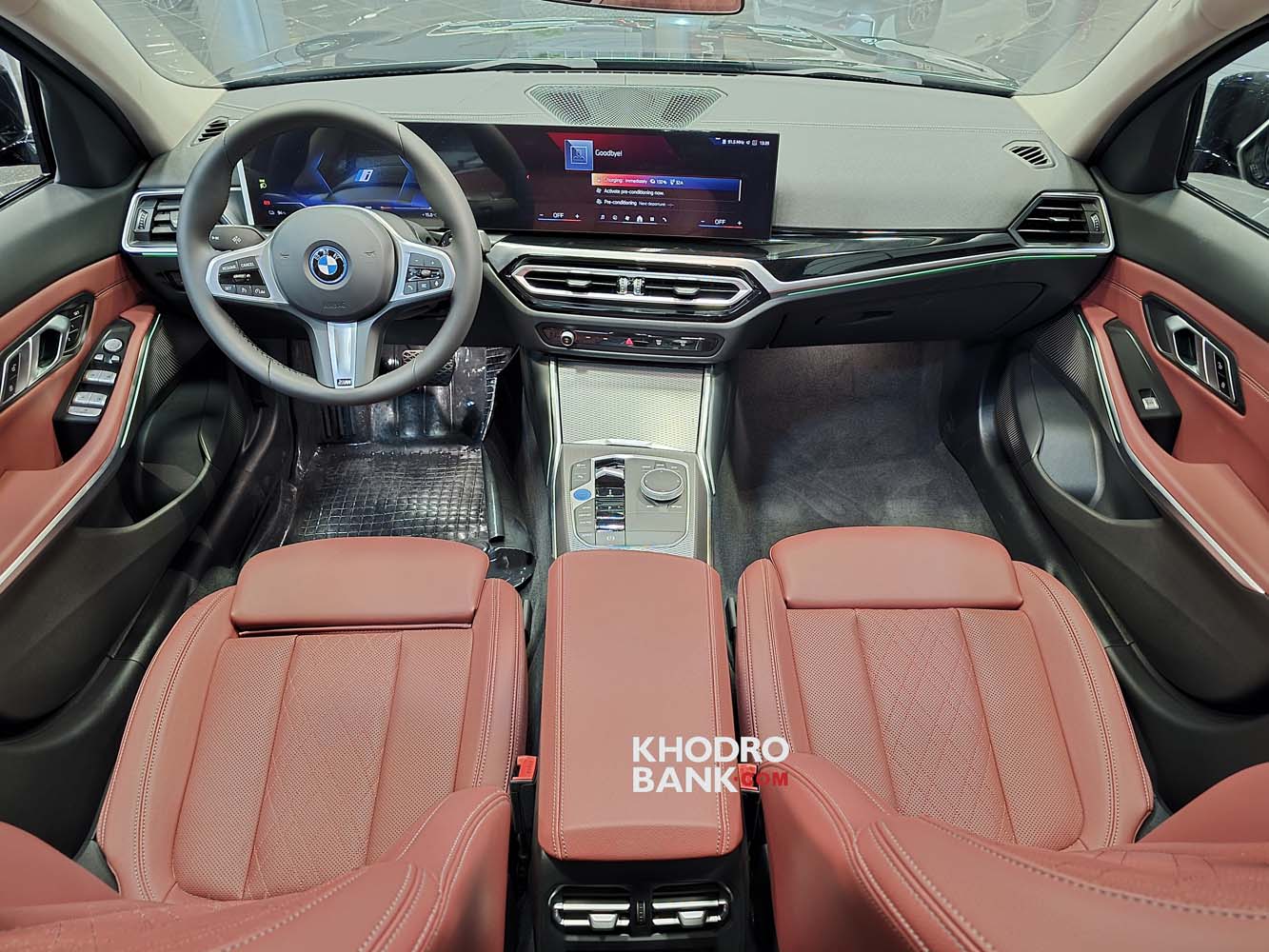 فضای داخلی بامو i3، ترکیبی از طراحی مدرن، مواد باکیفیت و فناوریهای پیشرفته است که مشخصه کابینهای جدید بامو محسوب میشود. نقطه کانونی داشبورد در هر دو مدل، نمایشگر منحنی شکل بامو (BMW Curved Display) است. این سیستم شامل یک صفحه نمایش 12.3 اینچی برای اطلاعات راننده (پشت فرمان) و یک صفحه نمایش لمسی 14.9 اینچی برای سیستم اطلاعات و سرگرمی مرکزی است که هر دو به صورت یکپارچه و با انحنای ملایم به سمت راننده قرار گرفتهاند. این نمایشگر، علاوه بر ظاهر جذاب، دسترسی به تنظیمات خودرو، سیستم ناوبری، اپلیکیشنها و کنترلهای مختلف را از طریق لمس، کنترلر iDrive (در صورت وجود) یا فرمانهای صوتی فراهم میکند.